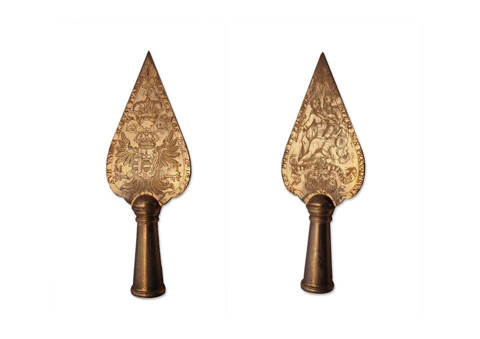 Exhibit of the Month 9 / 2020 SPEARHEAD FROM THE FLAGPOLE OF THE INFANTRY REGIMENT FLAG OF THE KOLOWRAT REGIMENT. Brass engraved spearhead from the flagpole of the regiment flag (Regimentsfahne) ...